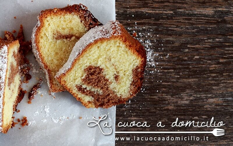 • imburrate e infarinate una tortiera e versate il composto con il cacao, successivamente quello semplice